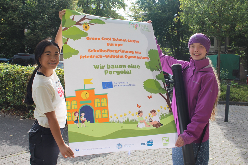 Project days on sustainable school grounds of the future with pergola construction at Friedrich-Wilhelm Gymnasium in Cologne in cooperation with the University of Cologne.