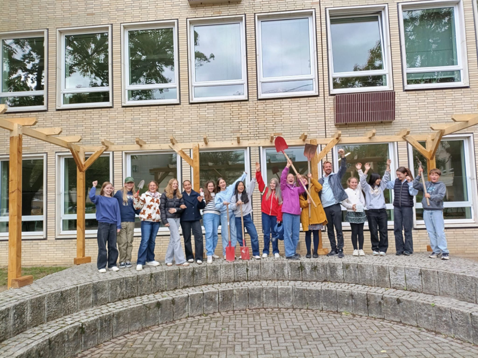 Following the project days, pupils voluntarily worked with teachers and partners to implement a planning idea: the construction of a shaded pergola as a green classroom. Measuring, sawing, drilling, screwing – step by step, a robust, inviting learning space was created that provides cooling shade, brings more greenery to the schoolyard and promotes biodiversity. Outdoor lessons are now possible, breaks are more pleasant and the microclimate is noticeably better. A film team from made up of students documented the process with interviews, construction phases and impressions from the team: watch the video below!