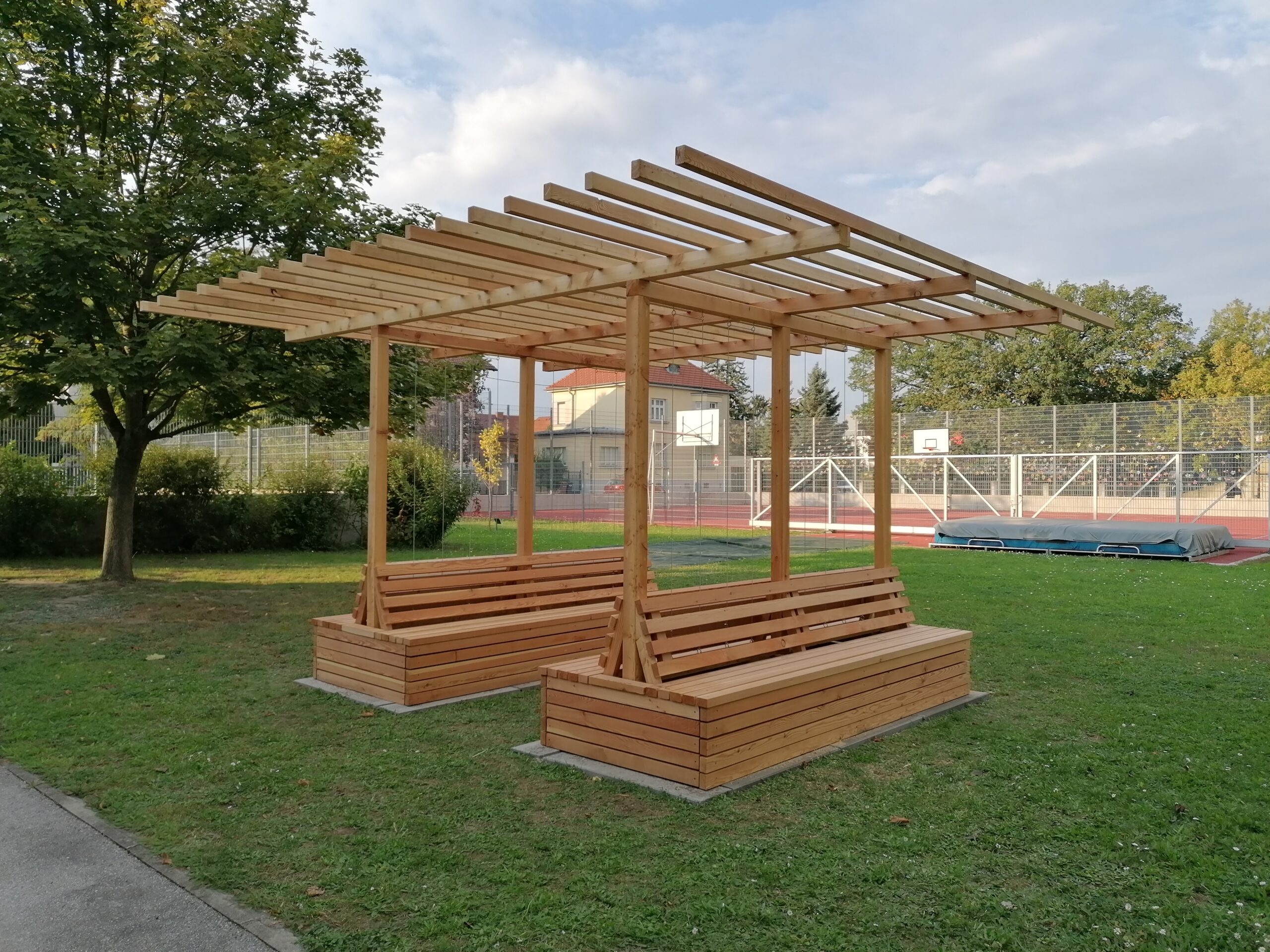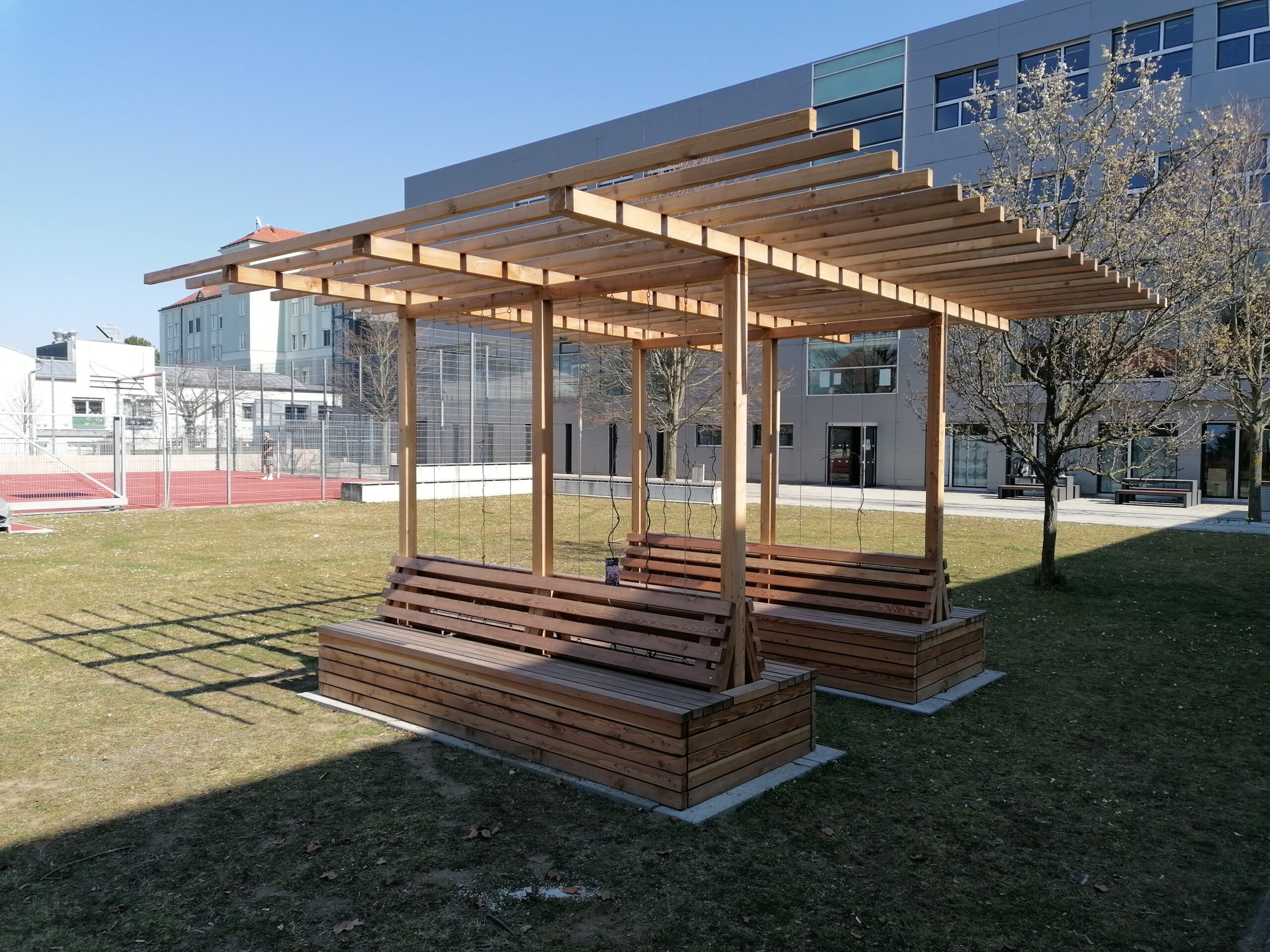 - CONSTRUCTION: Wooden construction with double bench seat and climbing aid (steel cable)